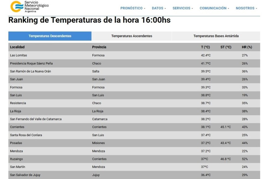 Según el SMN, no rige ningún alerta amarillo por calor extremo correspondiente al departamento La Capital.