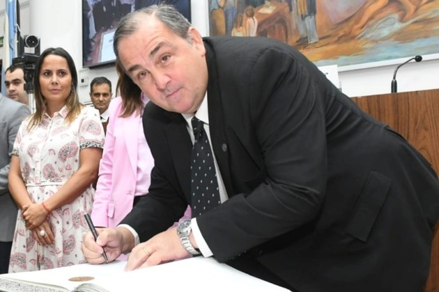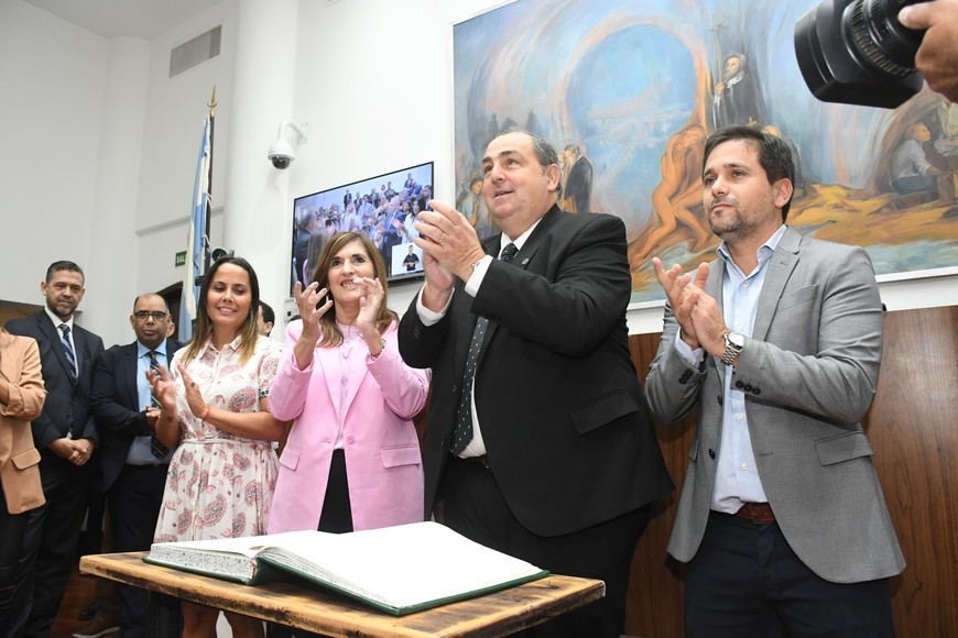 La firma del intendente Juan Pablo Poletti este miércoles en el Concejo. Crédito: Flavio Raina