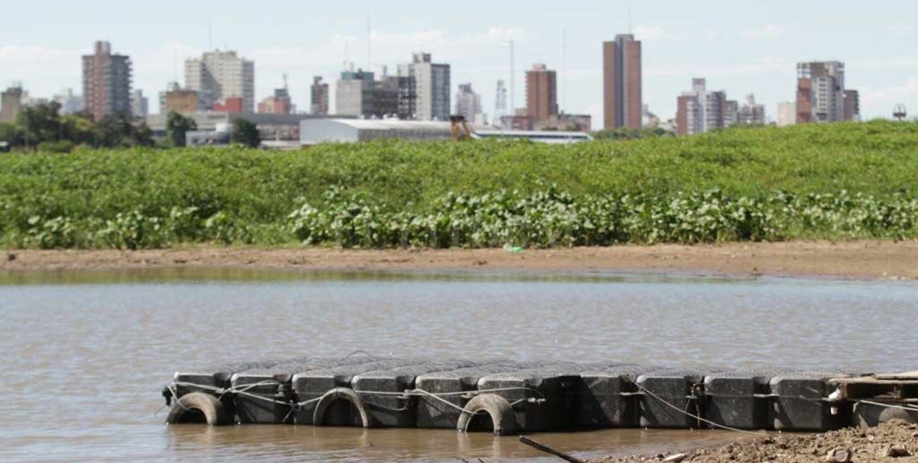 El muelle es de material plástico y se arma con piezas encastradas “como un rasti”, graficó el titular del Ente portuario, Sebastián Símez. La marina tiene 8 metros cuadrados y está amarrada y fondeada al pie de la escalinata, en la orilla de Alto Verde, frente a los elevadores de granos del Puerto de Santa Fe.