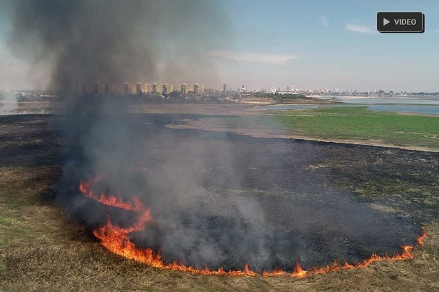 Este lunes por la mañana hubo una protesta de sectores ambientalistas en reclamo de la aprobación de la Ley de Humedales, para proteger los territorios que están siendo afectados por la quema de pastizales.