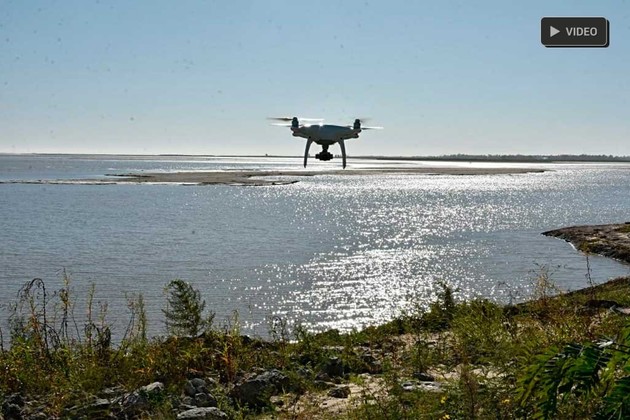 Este martes por la mañana, el drone de El Litoral sobrevoló el espejo de agua de la ciudad y se pudieron apreciar los considerables bancos de arena que quedaron expuestos por la bajante.