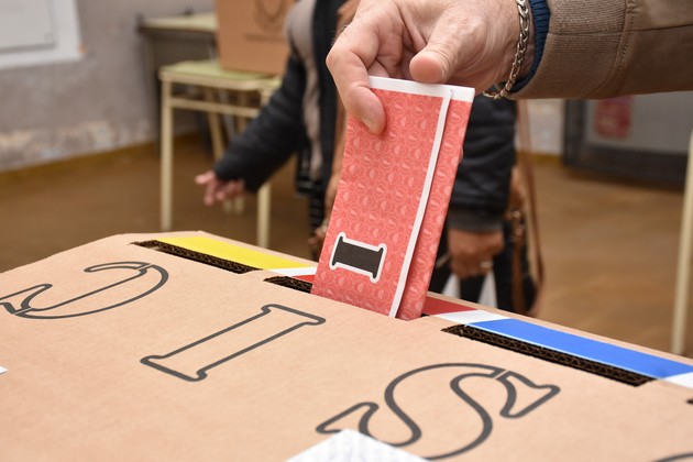 Un elector vota en las primarias de 2019. La "I" roja en la boleta única del cargo de Intendente. A su lado, la "C" amarilla es del Concejo: este año, se elegirán nueve bancas. Crédito: Archivo El Litoral / Flavio Raina