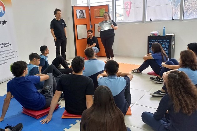Surgir es un espacio en el que se realizan talleres -en este caso con grupos escolares- donde el objetivo es potenciar las acciones de protección frente a diversas violencias. Se trabaja en un escenario físico portable, con recursos y dinámicas lúdicas creadas por Espacios Educativos.