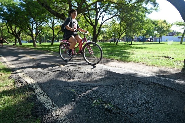 Lo que debería ser una solución para que los ciclistas viajen seguro y más rápido por un lugar donde no haya vehículos motorizados, se convirtió en algo, tal vez, más peligroso. La ciclovía que cruza el Parque Federal de norte a sur y de sur a norte tiene zonas intransitables, con pozos y levantamiento del asfalto. A esto se le suma la cantidad de motos que la transitan y las personas que la utilizan para correr. Se transformó así en un camino más lento y peligroso que por las noches es una boca de lobo.