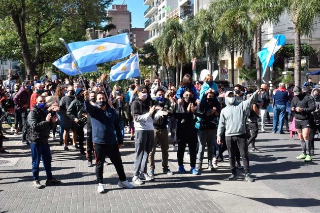 Con banderas argentinas y carteles con textos que expresaron el rechazo a la prohibición de funcionar, el centenar de manifestantes hizo sentir, también con algunos cánticos, su reclamo y luego de una media hora se desconcentraron en perfecto orden.