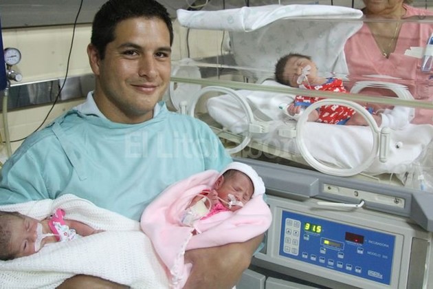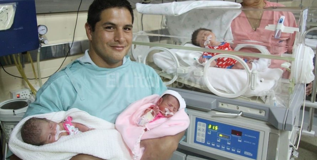 Si bien Gisela Servigni, la mamá, llevaba 36 semanas de gestación de un embarazo sin complicaciones, ayer tuvo contracciones y lo que tenía programado como un control de rutina se terminó convirtiendo en una cesárea de urgencia. “Es que la retención de líquido me generó presión y el doctor consideró que lo mejor era tenerlos”, precisó la mamá, sentada y visiblemente cansada en la habitación donde recibió a El Litoral.