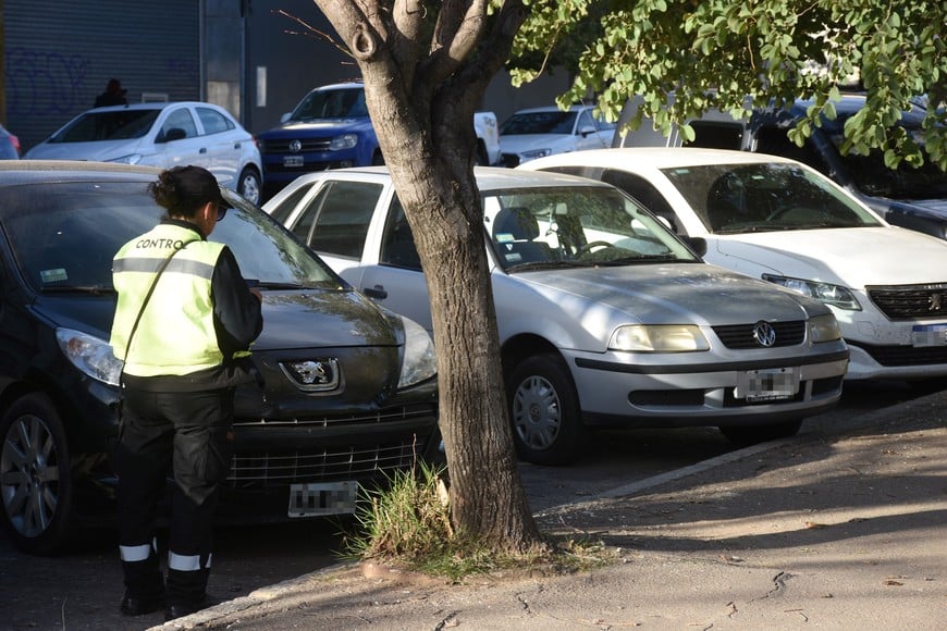 Una inspectora de tránsito verifica si los dueños de esos coches pagaron el SEOM. Crédito: Luis Cetraro