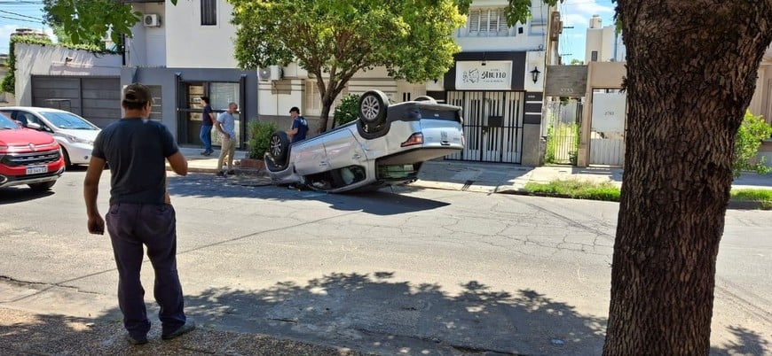 Un auto volcó en Necochea al 3700, entre Maipú y Chacabuco, en la ciudad de Santa Fe. Según el primer reporte, un joven que conducía solo se distrajo, “mordió el cordón” y el vehículo terminó con las ruedas hacia arriba. Por el momento no se informó oficialmente la gravedad de eventuales lesiones.