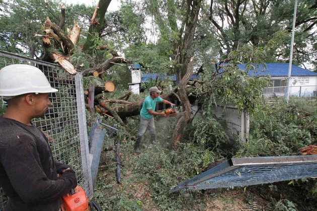 A más de 24 horas del fuerte temporal que azotó a la ciudad de Santa Fe, las cuadrillas de la Municipalidad continúan con las tareas de despeje y limpieza, sobre todo de los árboles y ramas caídas en la vía pública .