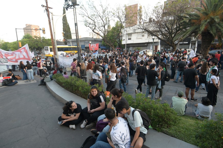 Una importante cantidad de personas -jóvenes en su mayoría- se concentró a lo largo del Bulevar Pellegrini y la intersección con San Jerónimo. Crédito: Manuel Fabatía.