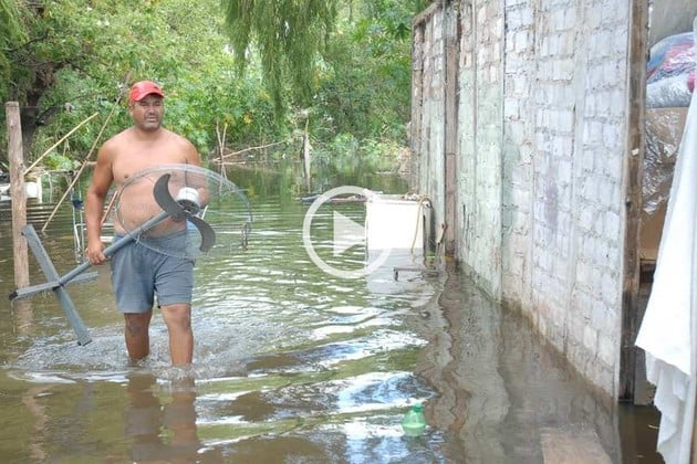 Marcelo debió mudar lo que pudo antes de que le llegue el agua a un rancho que levantó junto a la defensa de la playa Los Alisos, al fondo de barrio El Pozo sobre la laguna Setúbal. Pero el agua sigue avanzando —al mediodía el Paraná estaba en 6,14 metros de altura— y cada vez se aproxima más al lugar a donde trasladó a su mujer y a los otros seis ocupantes, entre los que se encuentran sus hijos.
