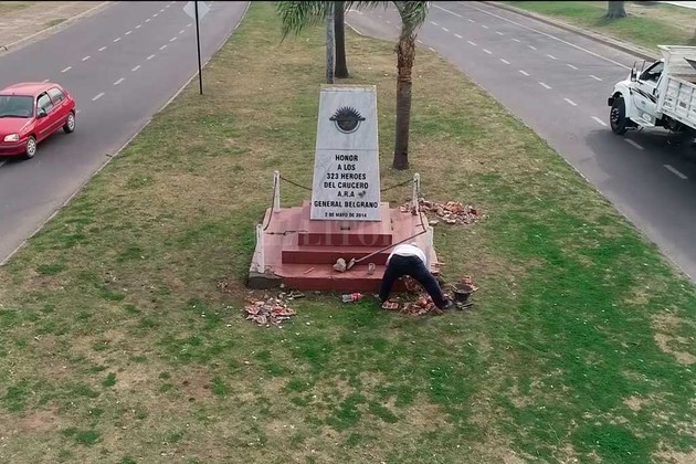 Hace varias semanas que el monumento en homenaje a los soldados caídos del ARA Belgrano en la guerra de Malvinas ubicado en la costanera, frente al Faro, lucía dañado. La rotura fue ocasionada por un vehículo en el marco de un siniestro vial allí ocurrido.
