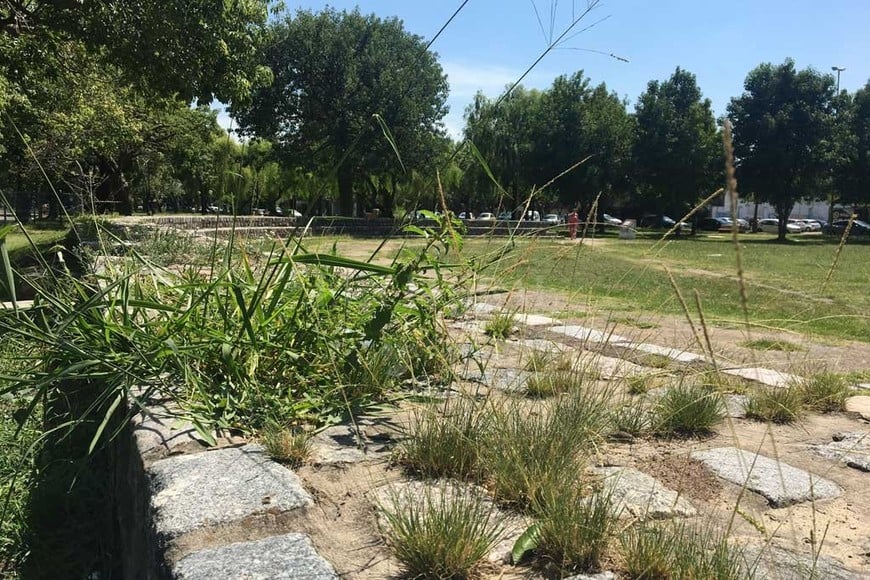 Los yuyos están altos e invaden los senderos peatonales, que en algunos tramos tienen las veredas levantadas por las raíces de los árboles.
