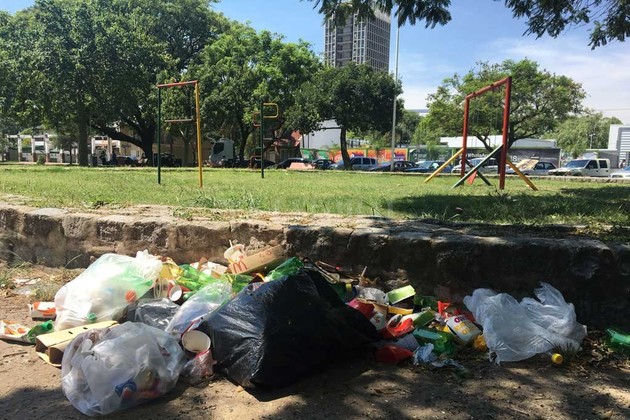 Hay grandes montículos de basura y yuyos altos. Muchos bancos están rotos, al igual que parte de los juegos infantiles y lo senderos peatonales.