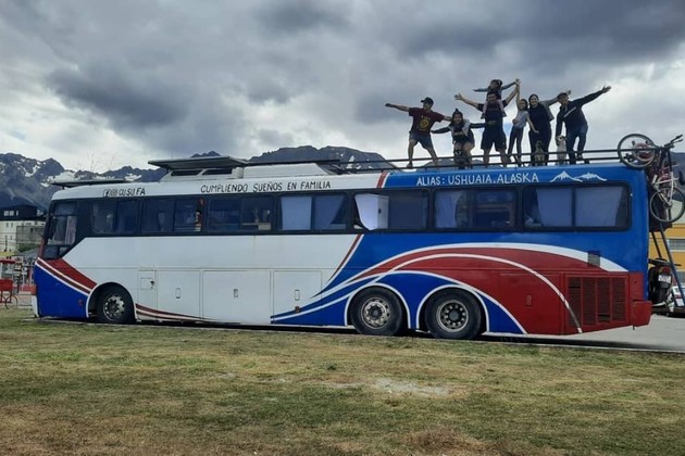 El destino final es Alaska. Así dice el cartel pintado en el micro de 13 metros de largo. Y tienen otro cartel con la siglas Cu.Su.Fa. (Cumpliendo Sueños en Familia). Ese es el nombre con el que se los puede encontrar en todas las redes sociales. Viajan sin apuro y tienen todo lo necesario para la subsistencia, hasta trabajo remoto y artesanías para vender en cada lugar que visitan. Una gran familia rodante, "El gran Goro", en homenaje a su padre.