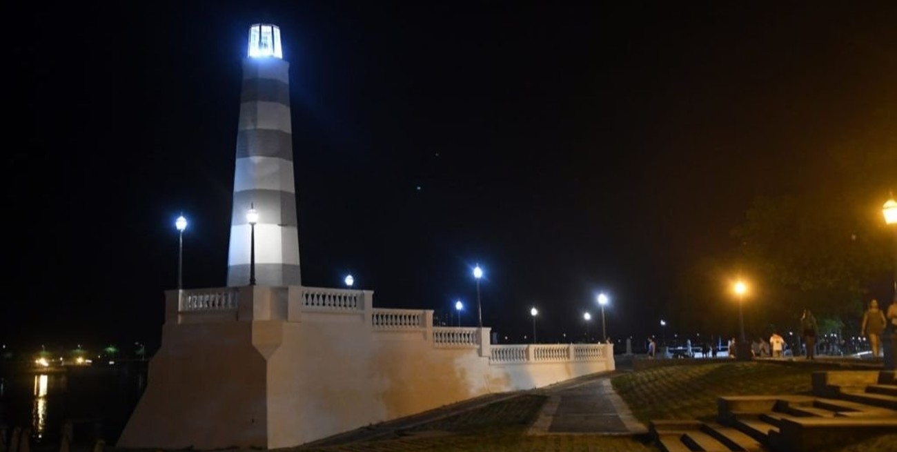 En la noche de este lunes, la Municipalidad volvió a encender el Faro de la Costanera Oeste. Ubicado sobre la avenida 7 Jefes, casi en la intersección con el bulevar Muttis, se trata de uno de los símbolos de la capital provincial y, junto con el Puente Colgante, son la clásica postal del tradicional paseo costero.