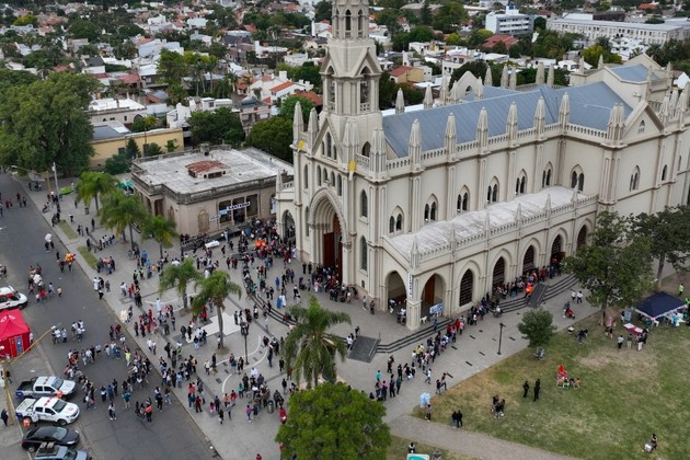 El drone de El Litoral estuvo presente desde horas de la tarde, junto a la masiva convocatoria de fieles que disfrutaron de la jornada.