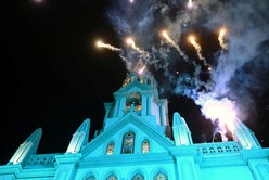 El escenario principal del Festival Folklórico de Guadalupe se iluminó durante la primera noche.