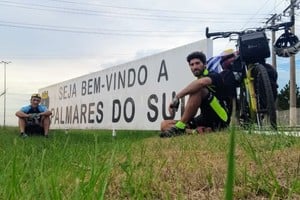 En Capao da Canoa fue el primer contacto con la playa. Mucho viento en contra y calor extremo. “Nos decían ‘Vai com Deus’ (ve con Dios). Ese saludo nos daba mucha fuerza. En Torres, Abbá cortó cadena en la subida de un puente. “Tuvimos un trayecto que padecimos mucho, y ya aparecieron las subidas y bajadas ‘comepiernas’”, bromea.