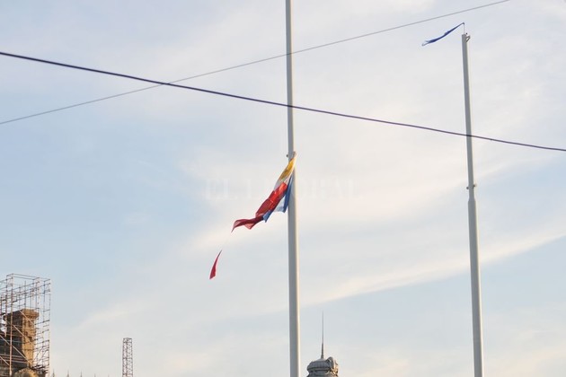 Los emblemas nacional y provincial se lucieron en los mástiles más altos de Santa Fe, durante la inauguración de las obras de remodelación del espacio verde. Pero no aguantaron las ráfagas de viento que soplan a 40 metros de altura.