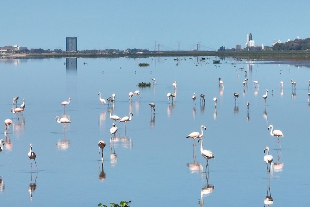 Además de flamencos hay varios tipos de aves que disfrutan del nuevo humedal de la Setúbal. Los especialistas ya identificaron más de 60 especies. La pregunta es: qué podemos hacer los seres humanos para preservar esta naturaleza. Cómo aprovechar para disfrutarla.
