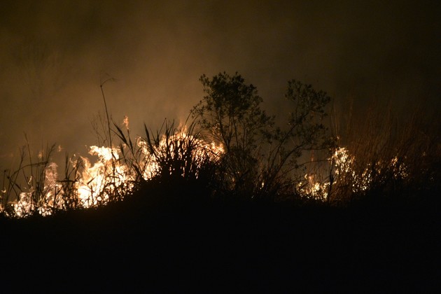 Los pastizales ardieron durante todo el día y ya cuando cayó la noche, las largas lenguas de fuego llamaron la atención de los automovilistas, que en gran número circulan por el lugar con habitualidad.