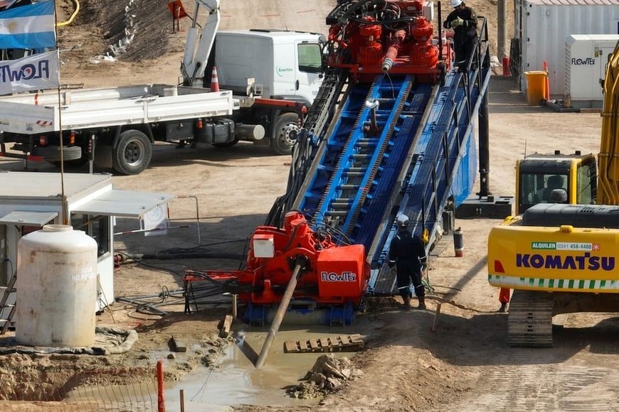 -Lo que se hace es ensayar con distintas bombas y cabezales de perforación para ver cuál es la combinación más adecuada; eso se hizo hasta el lunes, cuando se pudo empezar a perforar más.