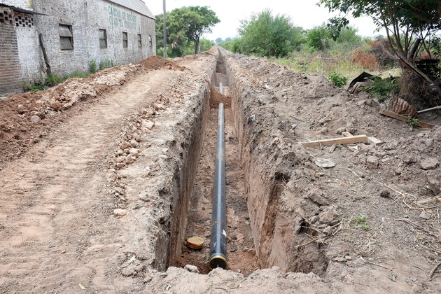Los caños se empezaron a enterrar desde la playa de Chaco Chico y ya asoman en la calle de tierra que desemboca en el Club Social y Deportivo "El Chaquito". Guillermo Di Salvatore