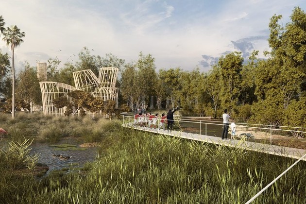 Como acceso a la pasarela se ideó el Centro Educativo. “Debe contar con todos los controles de acceso y con un centro de interpretación ambiental adonde recibir a los visitantes, dar las explicaciones del caso para luego realizar el circuito”, dijo Giobando. Su proyecto también ubicó allí un espacio para bar y restaurante, con visuales hacia la zona educativa, de exhibición.