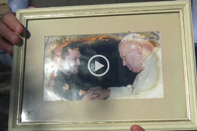 Hoy, después de 18 años de aquel momento de mucha tristeza, quien fuera sacerdote de la parroquia Santa Rosa, del barrio que lleva el mismo nombre, sacó a la luz ese cuadro que lo muestra junto a Juan Pablo II cuando lo visitó en Roma. Lo curioso es que el agua tapó el cuadro durante varias horas, pero la imagen de ambos quedó intacta. En el video se puede observar una muestra de lo que se vivió como un verdadero milagro.