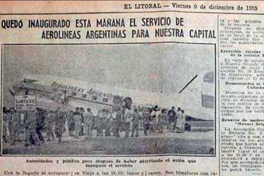 “El vuelo inaugural se inició en Ezeiza a las 8, siendo conducido el aparato por el comandante Luis Giménez y tres acompañantes de tripulación. Viajaron 11 pasajeros, cuatro con destino a Santa Fe y siete en tránsito a Córdoba, San Juan y Mendoza”, describió El Litoral hace 65 años.