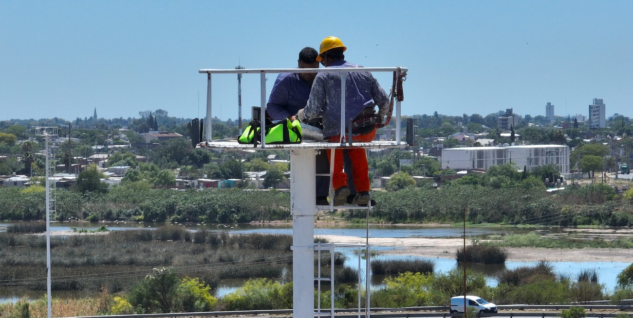 Ya se repararon 12 torres en la intersección de la Autopista y Circunvalación que estaban en condiciones y se cambiaron las luminarias por led. Ahora se están haciendo los pozos para colocar las nuevas columnas en la Circunvalación. Crédito: Fernando Nicola