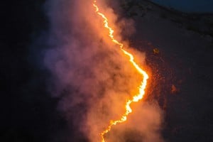 Las llamas, ya con el sol oculto en el departamento La Capital, iluminó la noche con una impactante postal de su línea naranja.