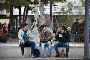 Una de las fotos muestra a tres amigos, en un espacio al aire libre y cada uno con su propio mate. La imagen puede verse como un pequeño ejemplo de responsabilidad ciudadana para evitar contagios de coronavirus.