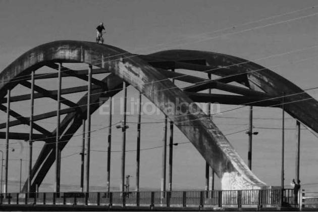 En las imágenes en video se puede observar al arriesgado ciclista trepando por el arco parabólico del Puente Carretero que mide 80 metros de luz. El tramo del puente donde está el arco pasa por encima del río Salado, próximo a la ciudad de Santo Tomé.