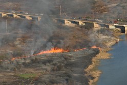 El humo redujo la visibilidad en el Puente Carretero. Crédito: Fernando Nicola