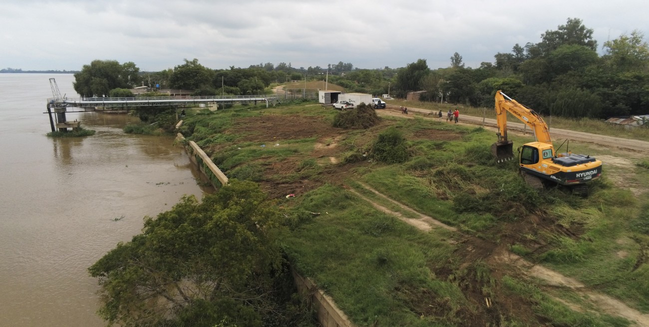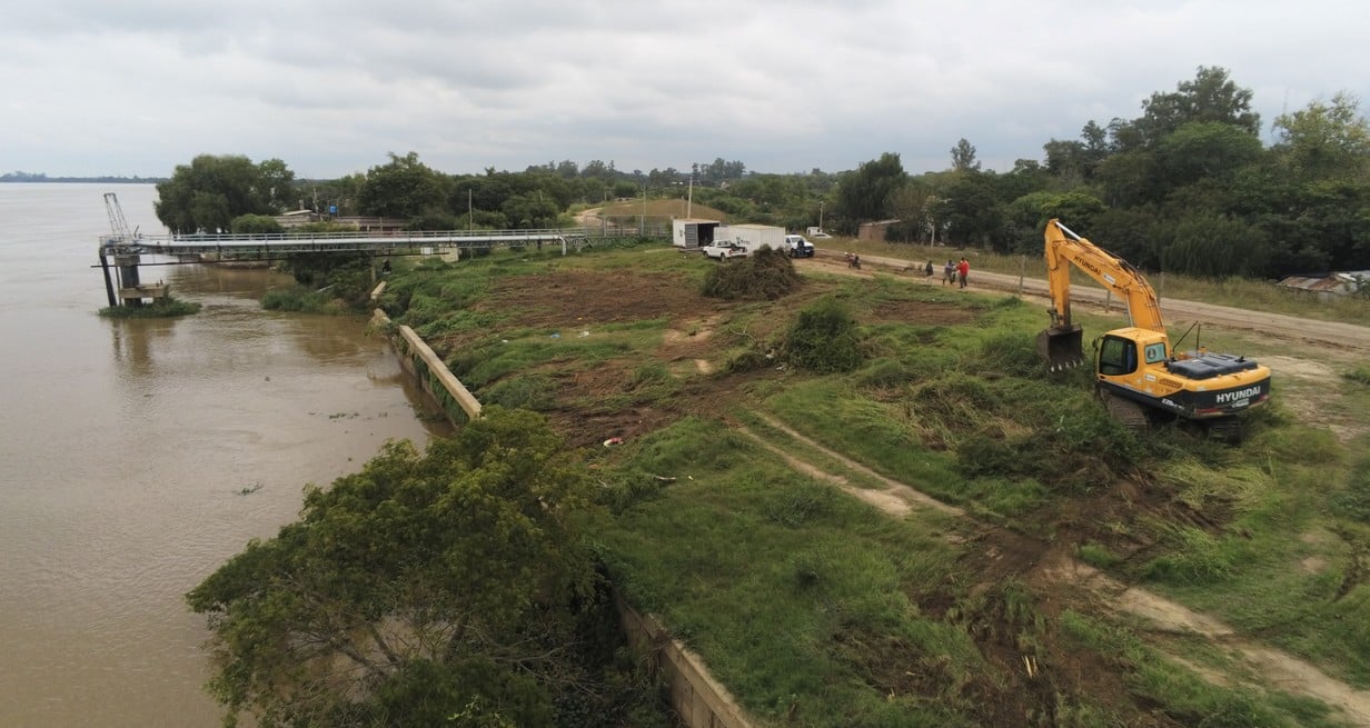 Terraplén Garello. Ya comenzó la obra de reparación de la defensa contra inundaciones en la Costa santafesina.