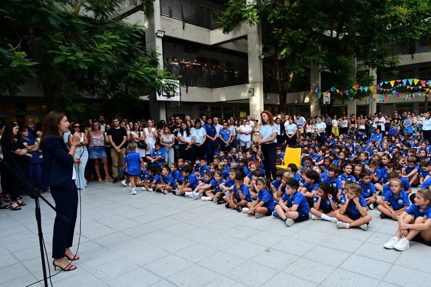 El acto se llevó a cabo en el patio de la escuela del nivel primario, donde se ubicaron los alumnos con sus uniformes azules, las mochilas preparadas, bien peinados y listos para arrancar las clases.