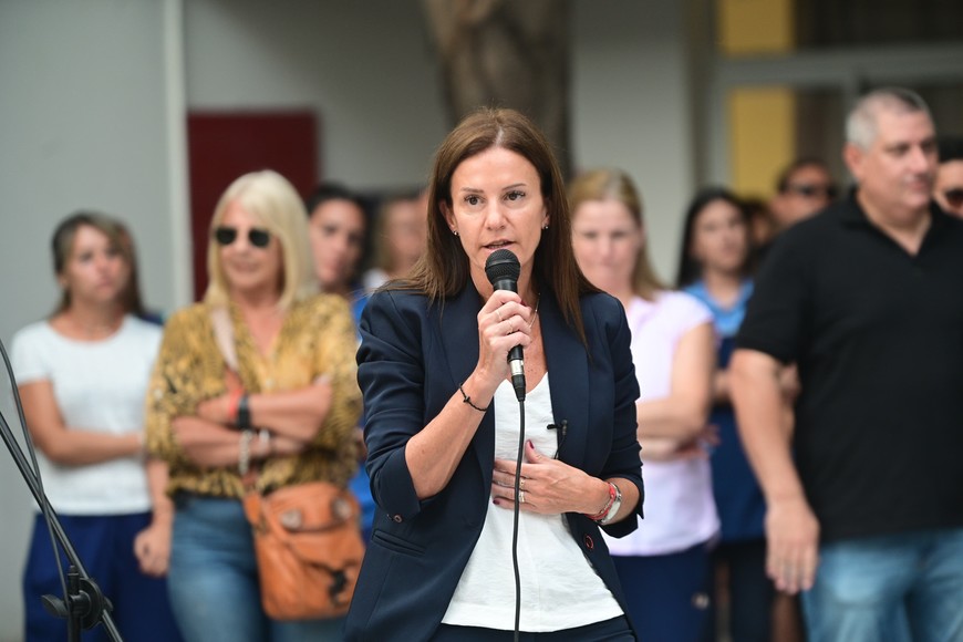 La siguiente en expresar unas palabras fue Carina Nicola, secretaria de la Mutual Jerárquicos Salud y subgerente de Recursos Humanos, en representación del presidente de la mutual, Juan José Sagardía.