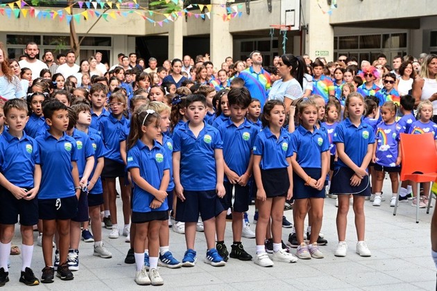 El complejo educacional desplegó en el patio del nivel primario a estudiantes, docentes y directivos, con un segmento especial para quienes transitarán su último año escolar. Desde su inauguración en 2010, pasó de 45 a 733 estudiantes en su matrícula de los tres niveles.