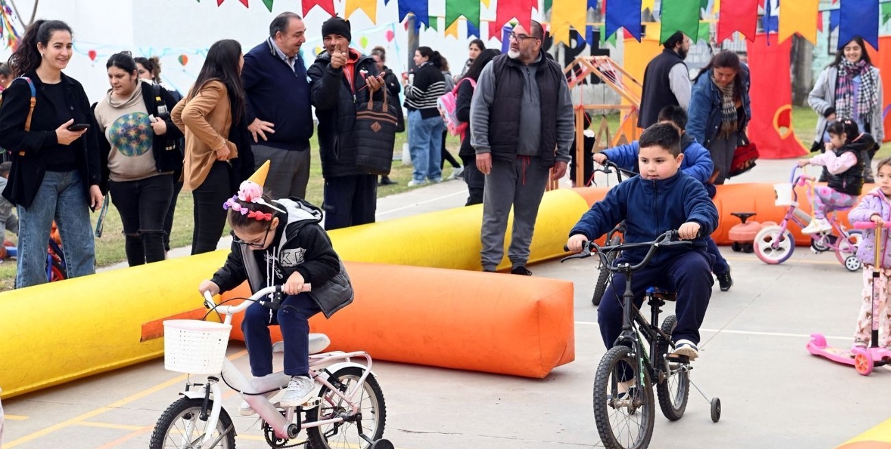 En el playón ubicado en Roberto Arlt y Roque Saénz Peña, los niños festejaron con juegos, música y en familia. Compartieron la jornada con los jardines de Varadero Sarsotti, San Lorenzo y de barrio Centenario.
