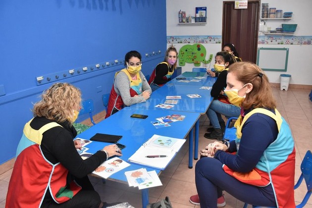 Flavio Raina En acción. Las docentes repasaron juntas el protocolo para cuando puedan volver a sus actividades con los niños.Flavio Raina En acción. Las docentes repasaron juntas el protocolo para cuando puedan volver a sus actividades con los niños.