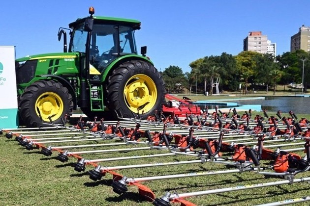 El intendente Juan Pablo Poletti y el secretario de Gestión Urbana y Ambiente, Guillermo Ferrero, entregaron 50 motoguadañas y dos tractores que se suman al equipamiento del parque automotor del municipio para cumplir con las tareas de mantenimiento de los grandes espacios verdes de la ciudad.