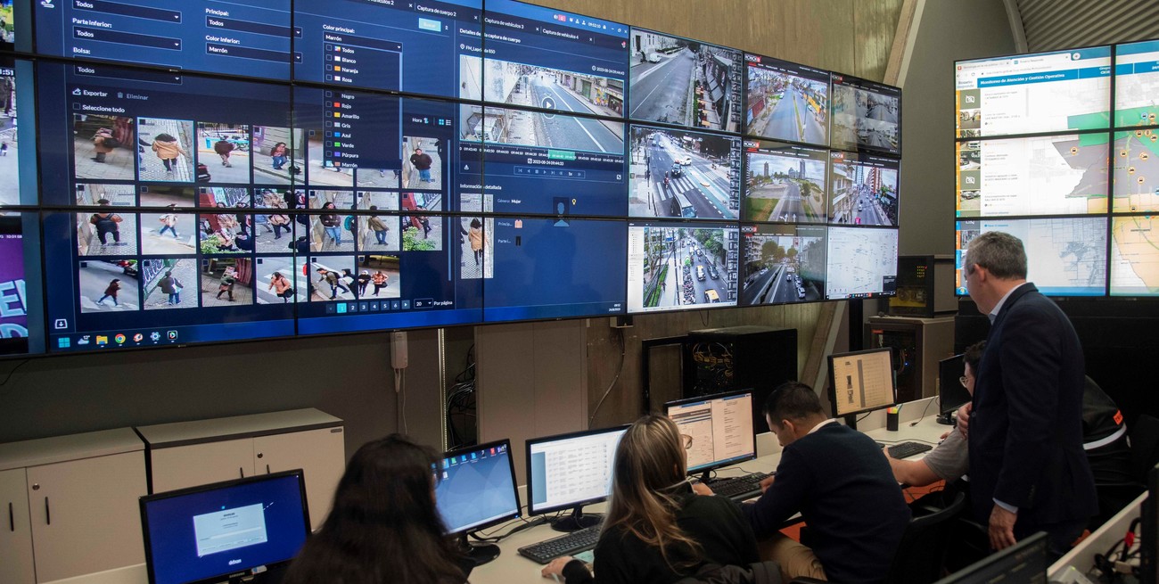 El Centro de Monitoreo de Rosario funciona con un sistema moderno, con unas 300 cámaras hoy activas, con botones de pánico y 50 paradas seguras. El sistema está operativo las 24 horas en todos sus puntos, con una vigilancia en tiempo real. Además, se integrarán a la red 600 cámaras que trabajan con inteligencia artificial (IA).