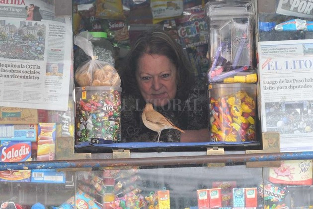 Otro vecino le hizo un peldaño sobre una vitrina llena de caramelos, “para que no se apoye en el vidrio y evite lastimarse”. Mientras la mañana transcurre, Juancito va y viene, se posa en el hombro de Sonia, charla, y comparte la jornada laboral. A veces ella lo reta, y el hornero baja la cabeza.