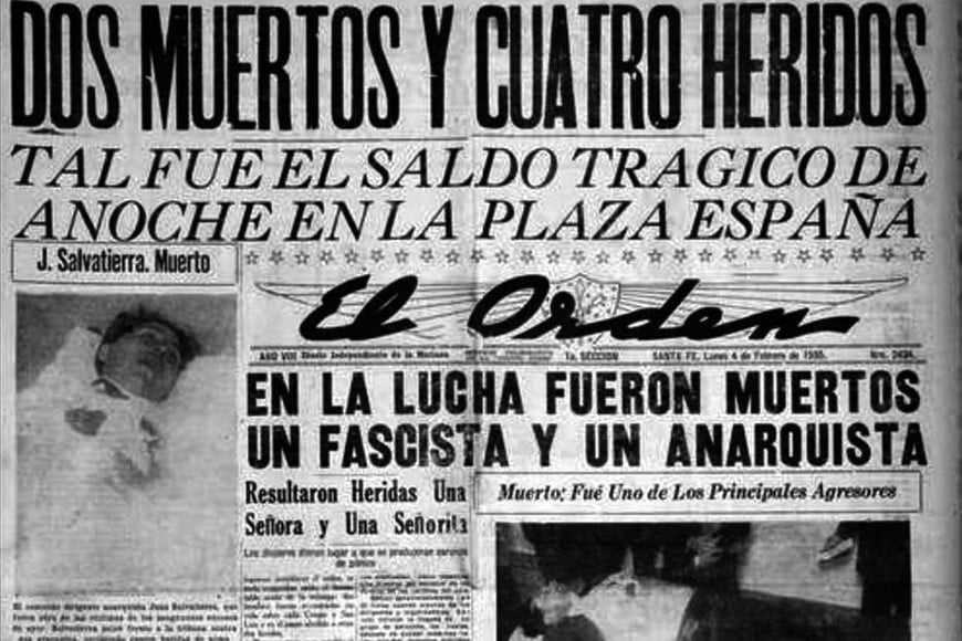 La crónica indica que se llevaba adelante un encuentro político, con unas 150 personas en el lugar de cara a un escenario montado a pocos metros de las oficinas del F.C.S.F (hoy Registro Civil). De repente, mientras uno de los oradores tenía la palabra, una bomba lacrimógena fue lanzada en dirección a los presentes. “El proyectil y los gases sembraron la confusión consiguiente, la que fue aumentada por personas que huían por calle Crespo en dirección Belgrano y otras que emprendian la fuga por San Luis hacia el sur. Casi simultáneamente se oyeron algunas detonaciones, gritos, exclamaciones en las que se nombraba a la patria, unido a voces de dolor. Segundos después habían quedado tendidos en el lugar del hecho, tres hombres”, contó este diario.