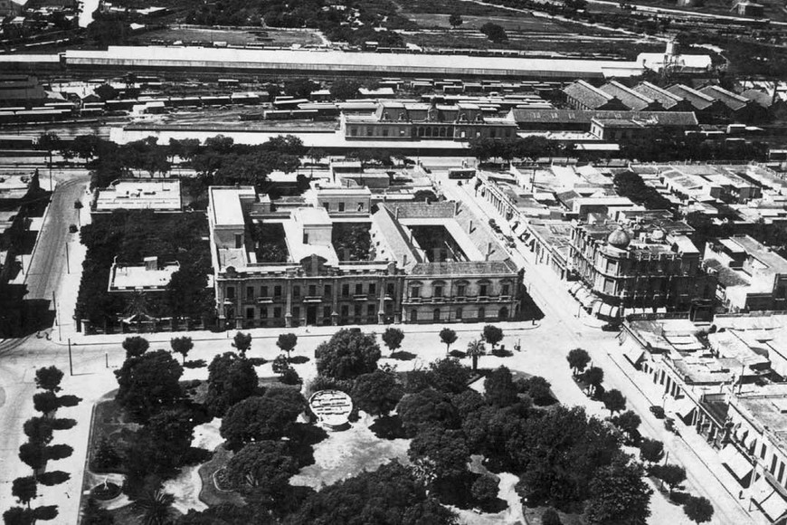 Antigua imagen aérea de la plaza España y su entorno. Foto: Archivo El Litoral