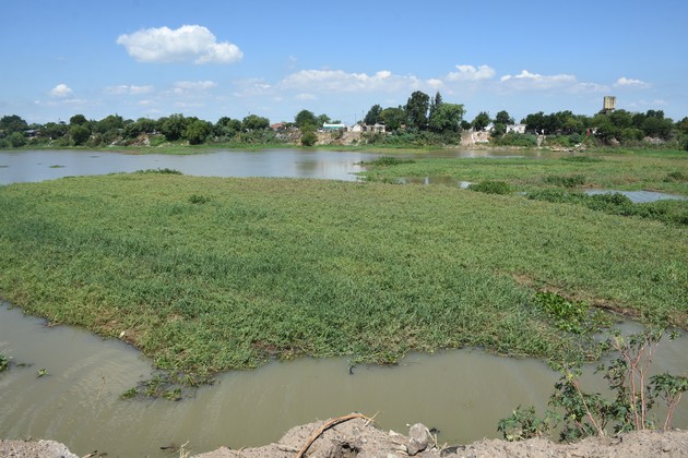 La vegetación ocupa gran parte del canal del riacho entre el Puente Colgante y el Puerto de Santa Fe. Créditos: Mauricio Garín
