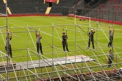 En el campo de juego se montó un escenario de 53 metros de ancho y dos torres de iluminación y sonido en el centro del campo de juego. La Comisión Directiva de Colón acordó con los productores de la banda para alquilar el estadio para este mega-recital que se cuide el césped. Para proteger el campo de juego, se implementó un sistema de protección con carpetas aislantes y mallas, similar al utilizado en el Estadio Único de La Plata y River Plate.