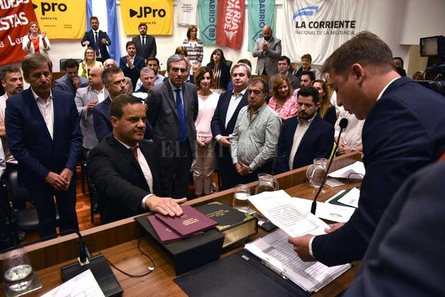 Ruido de bombos, banderas partidarias flameando, una multitud en las barras del Concejo, cánticos por uno o por otra. En la sesión preparatoria del Concejo juraron los nuevos concejales, muchas caras de alegría y emoción. Pero luego llegó lo otro: el momento de la elección de autoridades, principalmente presidente del Poder Legislativo local, nada menos. Los gestos empezaron a tornarse más ásperos: en la votación nominal, el radicar frentista Leandro González (FPCyS) fue elegido por mayoría nuevo presidente del Concejo, aunque hubo cinco abstenciones, cuatro del justicialismo.